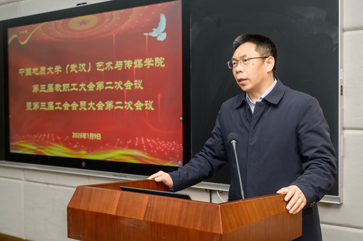 学院党委书记冷再心作闭幕致辞。他表示,2025年,学院在学校党委行政的领导下,在校工会的关怀指导下,在全体教职员工的齐心协力下,以立德树人为根本任务,以学科专业建设为核心使命,以党建思政工作为引领保障,本科教育教学工作平稳有序,研究生培养工作稳中有进,科学研究与学术交流工作稳中有增,美育实践和学生工作扎实有效,有力保障了学院事业发展。2026年,全院上下将坚决贯彻落实学校党委行政的各项决策部署,凝心聚力、砥砺奋进、守正创新、狠抓落实,为学校建设地球科学领域世界一流大学贡献艺媒力量!